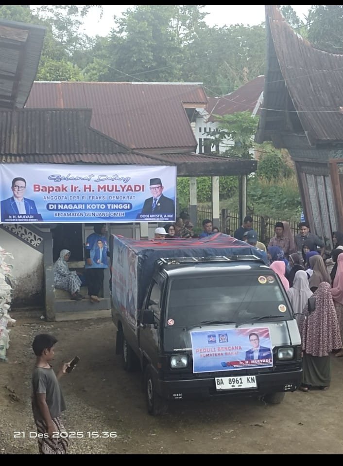 Limapuluh Kota, Balaiwartawan.com– H. Ir. Mulyadi, Ketua DPD Partai Demokrat Sumatera Barat sekaligus Anggota DPR RI, melakukan kunjungan ke daerah terdampak bencana hidrometeorologi di Kecamatan Gunung Omeh, Kabupaten Limapuluh Kota. Minggu,(21/12/25).