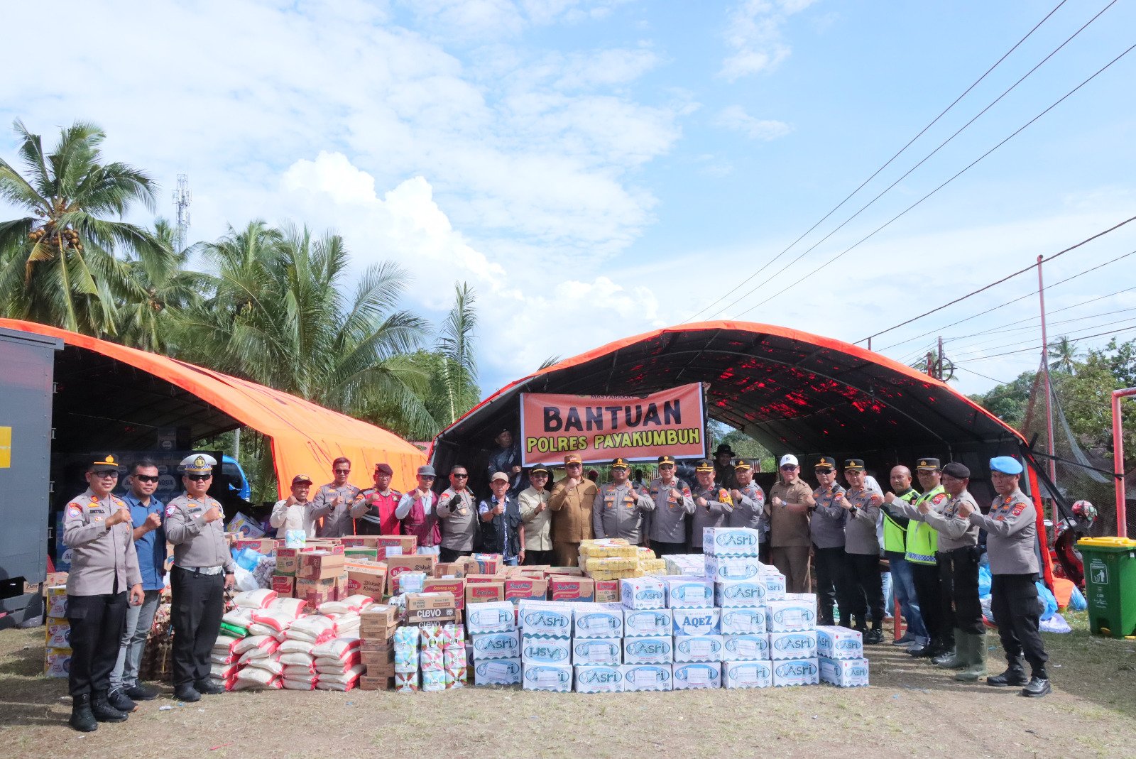 Menggunakan sepeda motor, Kapolres Payakumbuh bersama rombongan mengawal langsung pendistribusian bantuan kemanusiaan dari Polres Payakumbuh ke Posko Induk Penanggulangan Bencana di Tanjung Mutiara Kenagarian Batu Taba, Kecamatan Batipuh Selatan.