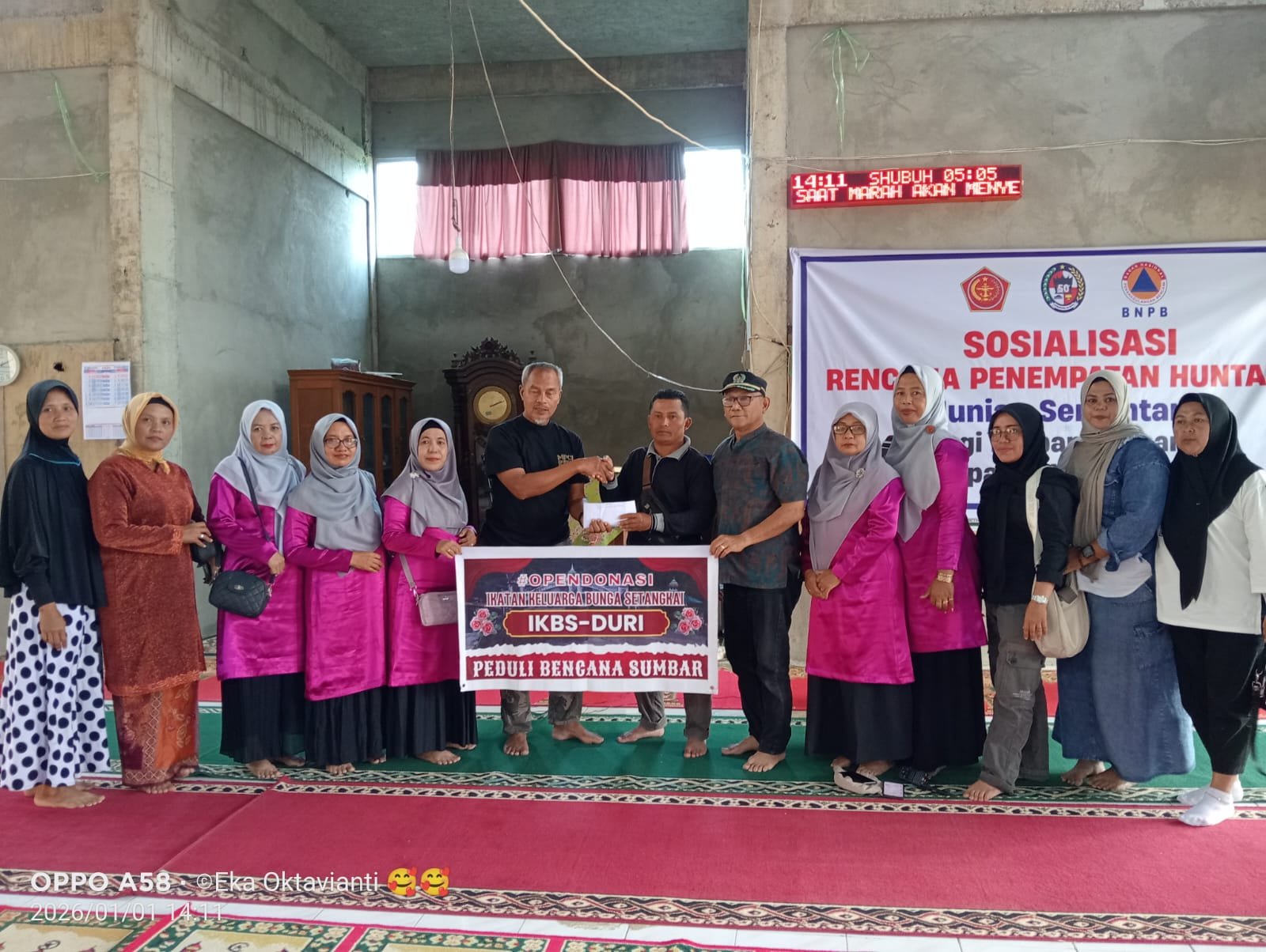 Rombongan disambut hangat oleh Wali Nagari Devi Surya beserta masyarakat. “Kami ucapkan ribuan terima kasih atas kepedulian IKBS Duri. Kepedulian ini tak bisa dibalas, hanya do’a baik yang kami sampaikan,” ujar Devi Surya.