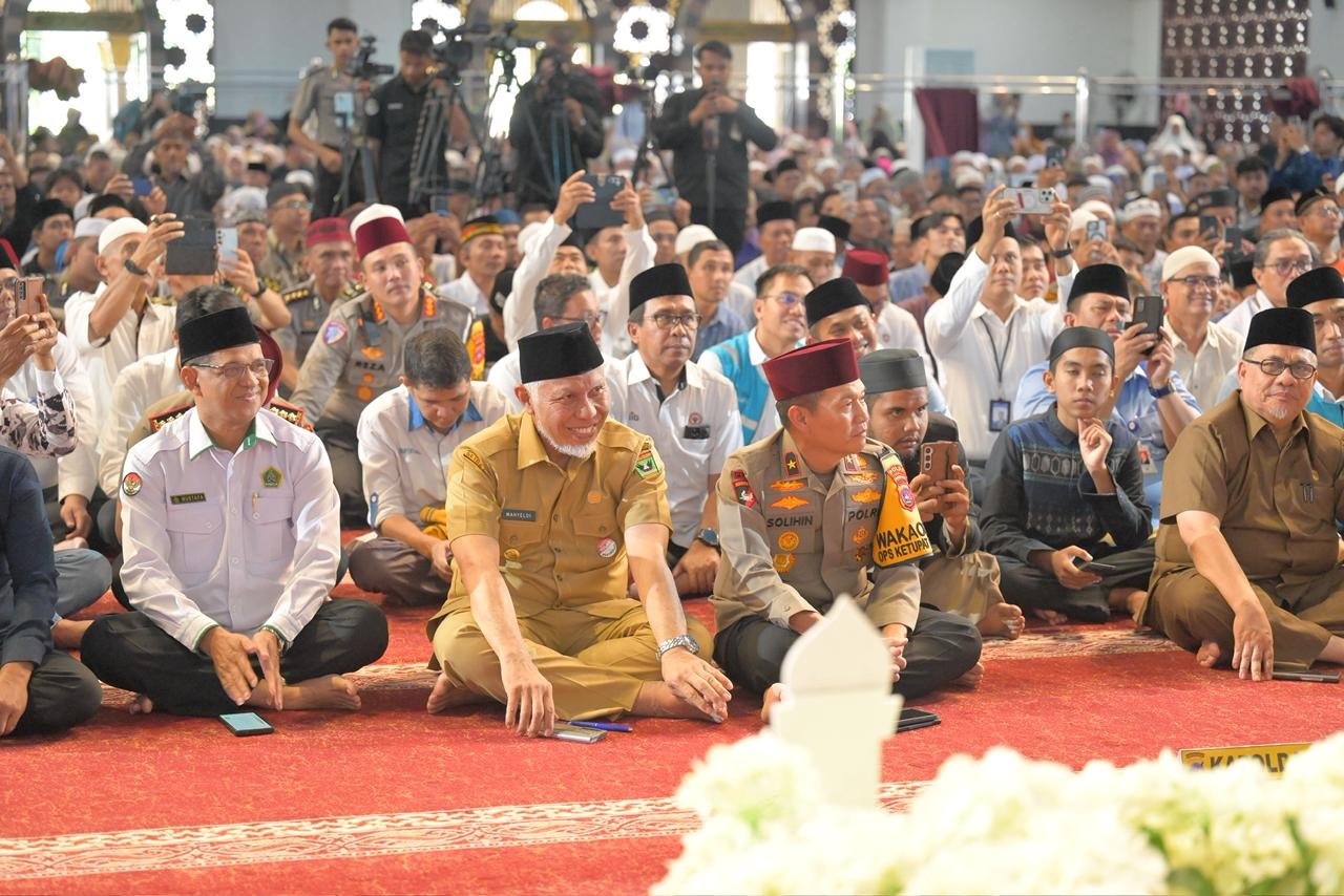 Kegiatan tersebut turut dihadiri Gubernur Sumatera Barat Mahyeldi Ansharullah, unsur Forum Koordinasi Pimpinan Daerah (Forkopimda), pimpinan Polda Sumbar, tokoh agama, serta ribuan jemaah dari berbagai daerah.