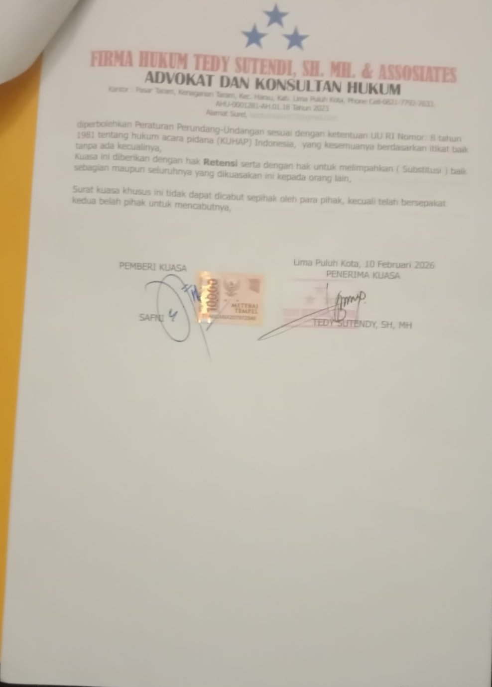 “Kalau masih ada yang ragu dan mempersoalkannya, Ambo TEDY SUTENDI, SH., MH., selaku Penasehat Hukum H. Safni dan selaku Ketum DPP LSM GIB siap untuk diundang kapan saja dan di mana saja untuk menjelaskan persoalan ini,” tegasnya pada Kamis (19/3/26).