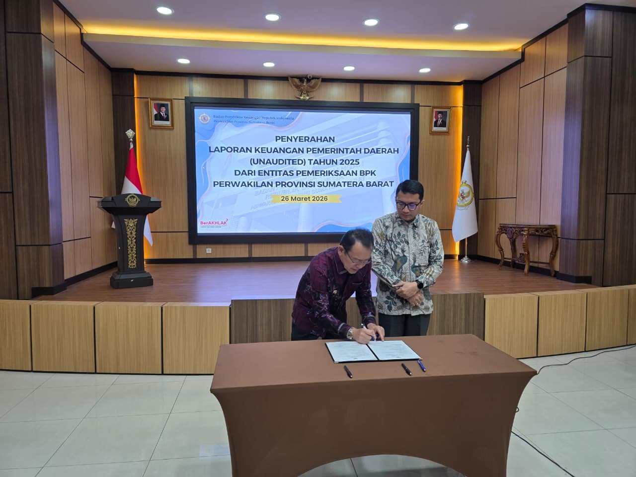 Payakumbuh, Balaiwartawan.com — Wali Kota Payakumbuh, Zulmaeta menyerahkan Laporan Keuangan Pemerintah Daerah (LKPD) unaudited Tahun Anggaran 2025 kepada Badan Pemeriksa Keuangan (BPK) Perwakilan Provinsi Sumatera Barat di Padang, Kamis (26/03/2026).